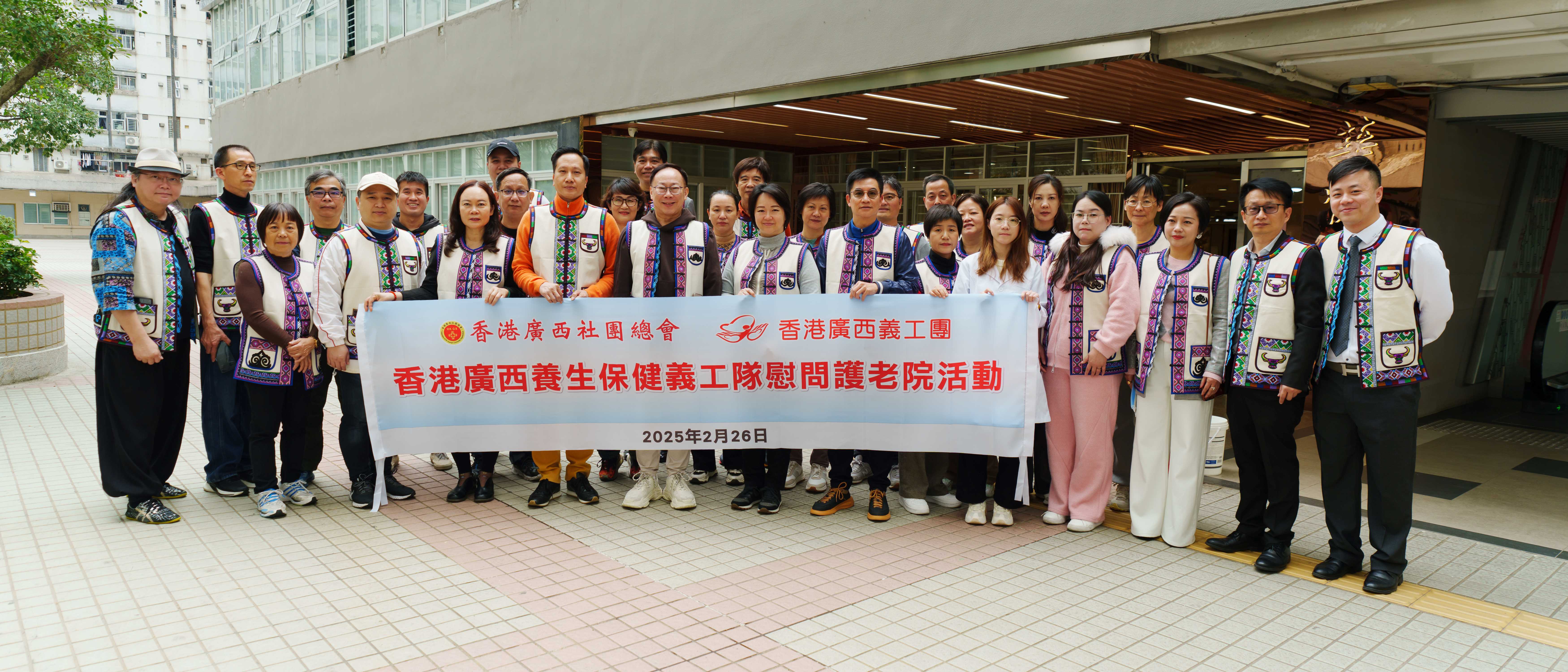2月26日,香港廣西社團總會主辦「香港廣西養生保健義工隊慰問護老院活動」,一眾畢業學員慰問護老院長者,為長者提供保健服務及送上保健品,亦有註冊中醫師現場義診。香港廣西社團總會會長文頴怡、榮譽會長李君豪、常務副會長蔡朝旭、深水埗區議員、香港廣西社團總會秘書長羅志超、深水埗區議員龐朝輝、香港廣西社團總會副會長張奕豪、香港廣西社團總會副會長譚艷影、香港廣西養生保健義工隊隊長張文迪出席活動。