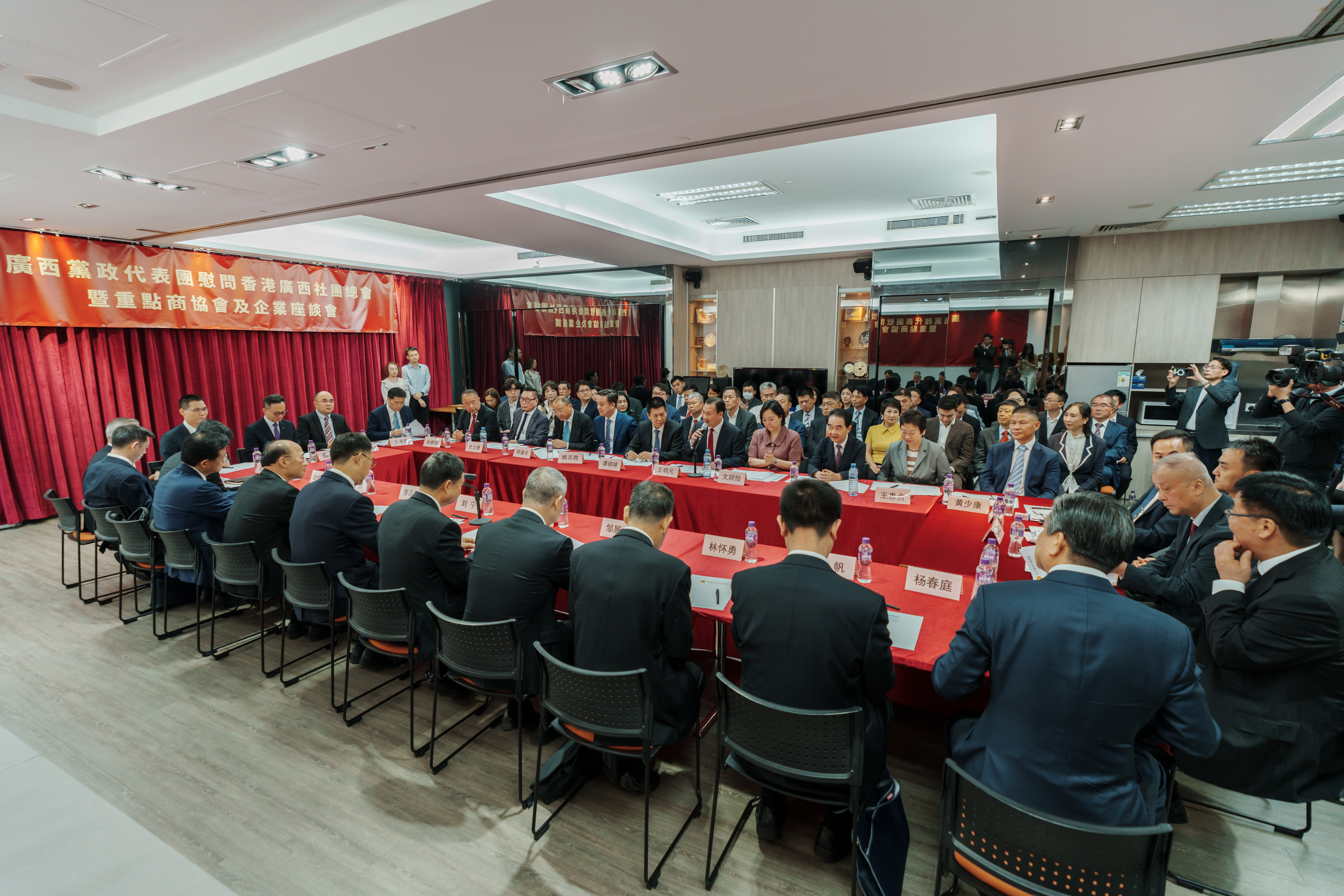 2024年5月22日,廣西黨政代表團訪問香港廣西社團總會,並出席了重點商協會及企業座談會。在此次會議中,香港廣西社團總會的架構成員以及香港重點商協會、企業代表同敘情誼,探討桂港合作的機遇,攜手共拓商機,共謀發展大計。