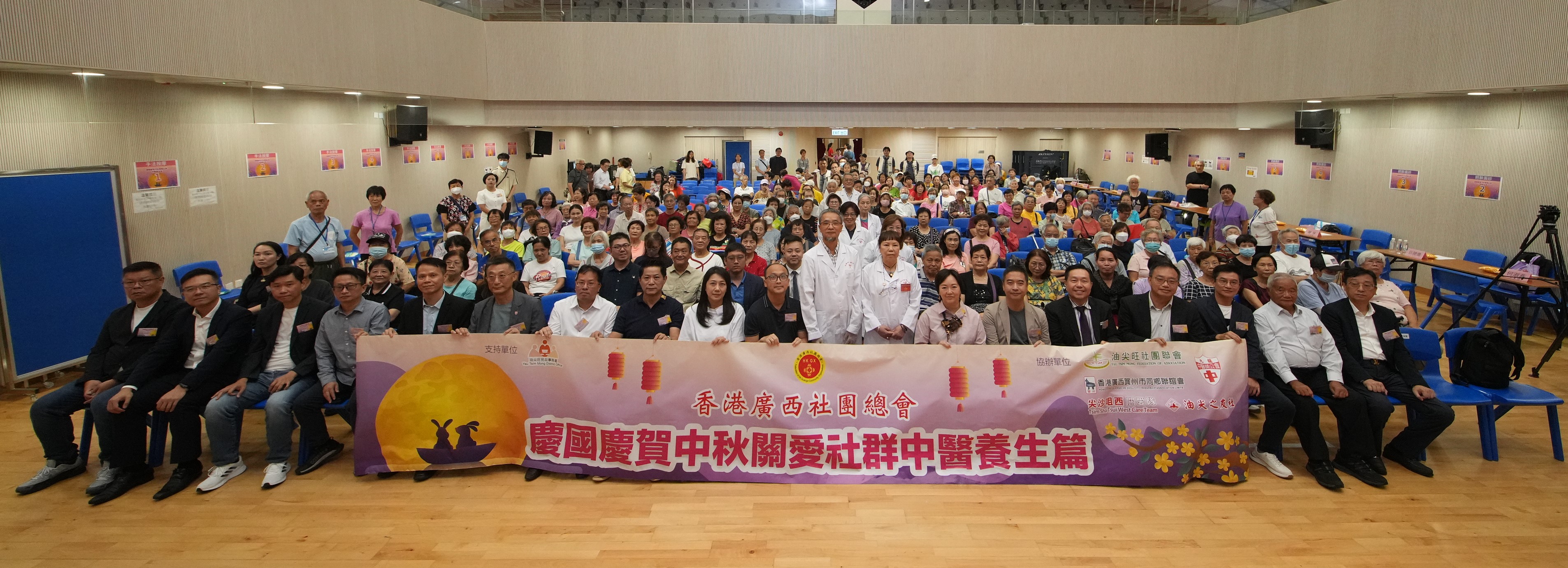 為慶祝國慶及中秋佳節,推廣中醫養生文化,香港廣西社團總會於10月6日中秋節當天,在梁顯利油麻地社區中心成功舉辦「慶國慶賀中秋關愛社群中醫養生篇」活動。是次活動獲得油尖旺社團聯會、香港廣西賀州市同鄉聯誼會、油尖之友社、尖沙咀西關愛隊及九龍中醫師公會共同協辦,吸引逾200名市民參與,現場洋溢著節日的歡樂與社區的溫情。