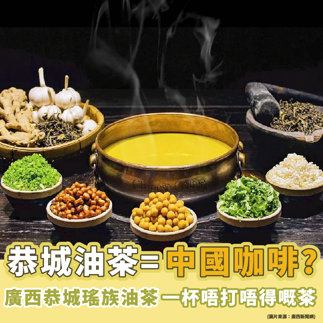 油茶有另外一個別稱稱為「中國咖啡」,除了因為油茶的材料用了茶葉所以味道有一點甘苦之外,亦含有生薑、蒜等食材,能起到一定的醒神醒腦作用,所以又被稱為「中國咖啡」。